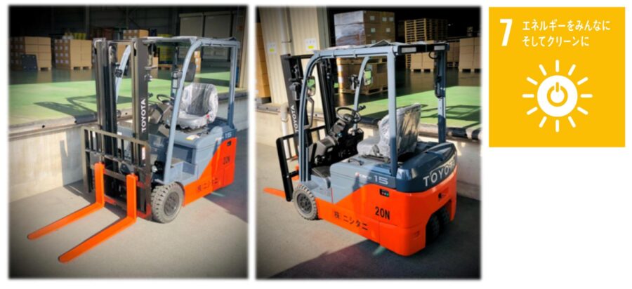 フォークリフト納車 2022 / 12 / 16 CSR活動 先々月に続き、新しいフォークリフトが納車されました。前回同様に旋回性能の高い新型3輪タイプです。わが社ではバッテリー式フォークリフトへのへシフトを進めています。 ≪ 前の記事 ペットボトルキャップ 次の記事 ≫ ペットボトルキャップ