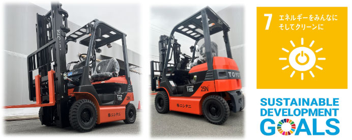 フォークリフト納車 2025 / 07 / 08 CSR活動 上川工場に新しいフォークリフトが納車されました。当社グループ25台目のフォークリフトとなり、今回も地球に優しいバッテリー式です。フォークリフトのバッテリーはBCP対策として自然災害など緊急時の非常用電源としても利用が期待できます。わが社ではフォークリフトの電動化をはじめ、カーボンニュートラル推進に向けて様々な取組を実施してまいります。 ≪ 前の記事 「三重とこわか健康経営カンパニー2025」に認定されました 次の記事 ≫ フォークリフト納車