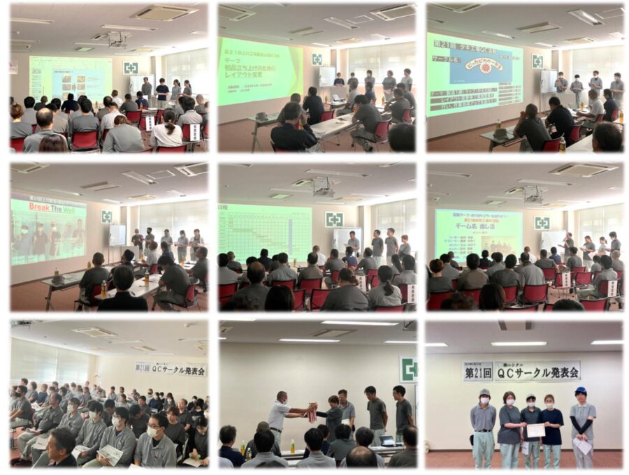 第21回QCサークル発表会 2024 / 09 / 21 人材育成 第24回目のQCサークル発表会を開催しました。5ヶ月間の活動の集大成である発表会、どのサークルも皆さん立派に発表してくれていました。「ものづくりはひとづくりから」の理念の基、人財育成の一環としてこれからもQCサークル活動を継続して行きたいと思います(^^♪。 ≪ 前の記事 太陽光発電設備増強 次の記事 ≫ 「みえグリーンボンド」への投資について