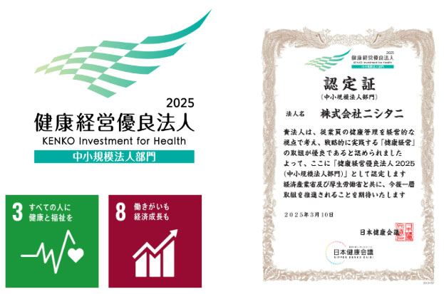 当社(株式会社ニシタニ)は昨年に続き経済産業省が推進する「健康経営優良法人 2025」で、中小企業法人部門に認定されました。