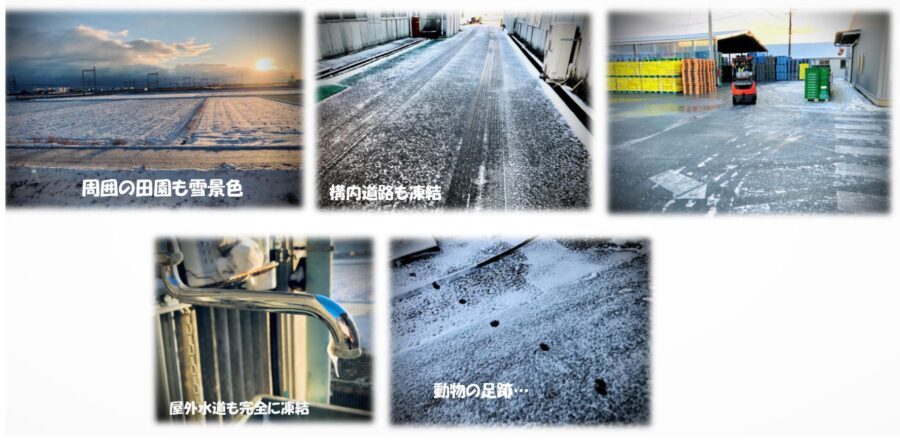 雪 2023 / 01 / 25 スタッフブログ 「10年に一度の寒波襲来」と各種メディアが報じていましたが、、、本当でした( ゚Д゚)一面雪景色に加えて構内路面も凍結。。(ーー;)それでも時間に遅れることなく到着して積込み作業をしてくれている運送業者さんには頭が下がりますm(_ _)m気を付けて運転して行って下さい。 ≪ 前の記事 「三重県SDGs推進パートナー」(第4期)に登録 次の記事 ≫ QCサークル活動定期フォロー会