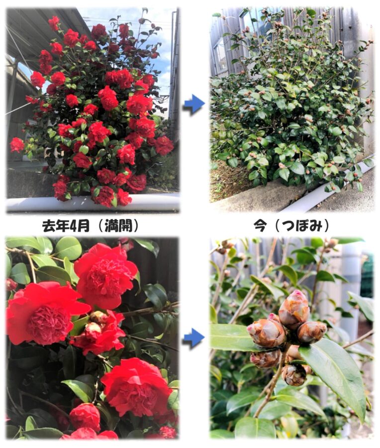 蕾(つぼみ) 2023 / 03 / 02 スタッフブログ 昨年4月に掲載した満開の”ツバキ”が、今年もまた力強く冬を越してくれました。例年になく厳しい冬でしたが、しっかりとした蕾をたくさん付けてくれています。1ヶ月後に大輪の花を咲かせてくれることに今から期待してしまいます(^^)私たちも植物に負けないように頑張らなくてはなりませんね(^^; ≪ 前の記事 QCサークル活動定期フォロー会 次の記事 ≫ 技能実習生入社