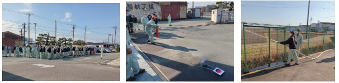 防災訓練(上川工場) 2021 / 12 / 21 スタッフブログ 今日は先月のタキ工場に続いて、上川工場でも防災訓練を実施しました。地震を想定した避難訓練と火災を想定した消火訓練と通報訓練を実施。普段使用する機会のない消火器と放水訓練は貴重な経験になりました。 ≪ 前の記事 構内路面補修工事 次の記事 ≫ 〈QCサークル活動定期フォロー会〉