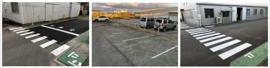 構内路面整備(上川工場) 2022 / 01 / 10 スタッフブログ 車両の入構が無くなる正月連休を利用して、構内の路面標識の整備を実施しました。パーキングラインや横断歩道などの路面表示が見やすく書かれていると自然とそこに意識が向きます。特に横断歩道はくっきりと書かれていると不思議とその上を歩きたくなるものですね(^^)。「表示・見える化」は安全の基本であることを改めて認識できる機会となりました。休日出勤で作業してくれた社員の皆さん方、ありがとうございました! ≪ 前の記事 〈QCサークル活動定期フォロー会〉 次の記事 ≫ 〈QCサークル活動定期フォロー会〉