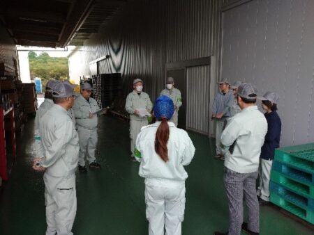 幹部や間接部門の社員が1カ所に集まり、作業するのに危ない場所はないか、歩いたりリフトや車を運転したりするのに危ない場所はないか、など危険がないかを見て回ります。